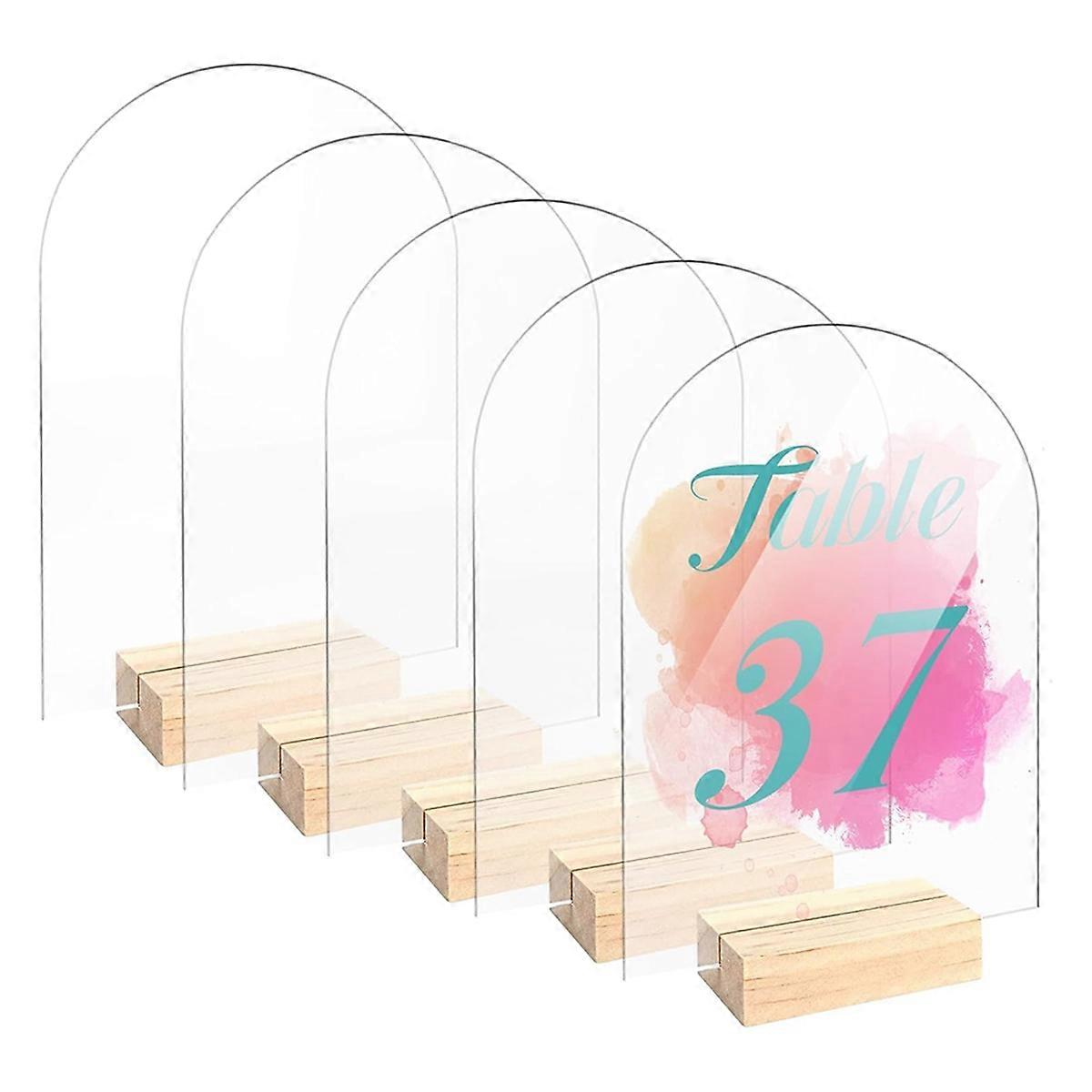 5pcs 5x7 Inch Blank Clear Arch Acrylic Sign with Wooden Stand, Arch Round Acrylic Plate Sign Seating Sign Table Cards