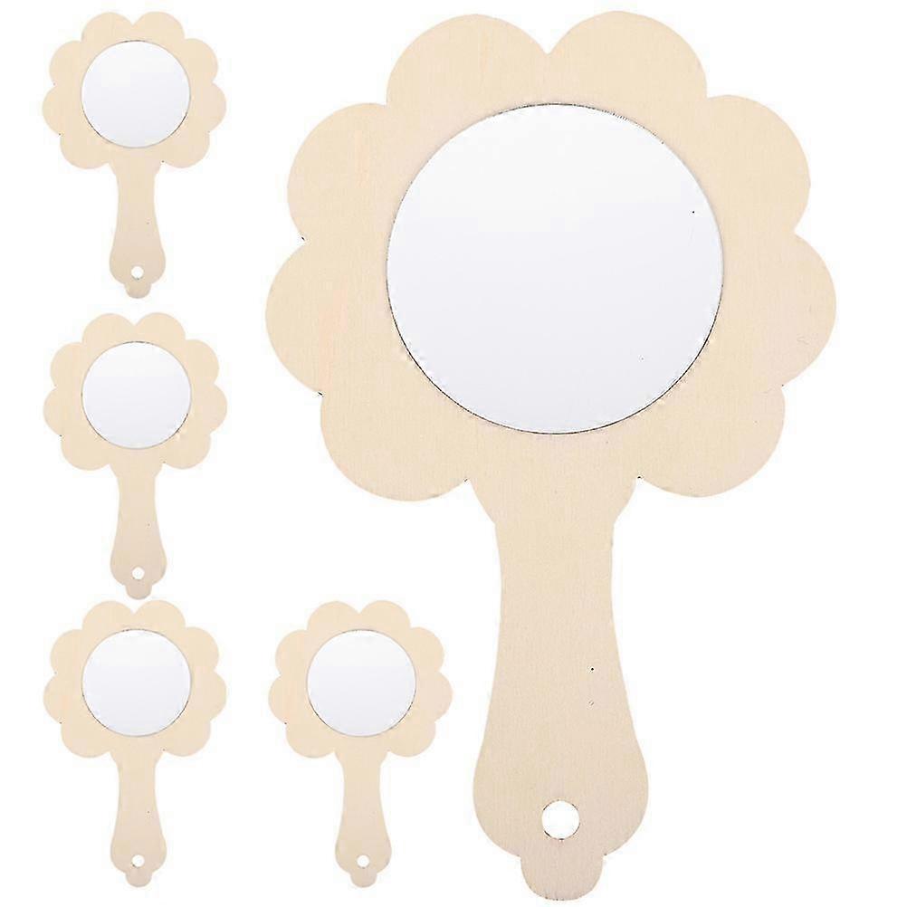 5Pcs DIY Wooden Handheld Mirror Unfinished Mirror Unpainted Makeup Mirror for Kid