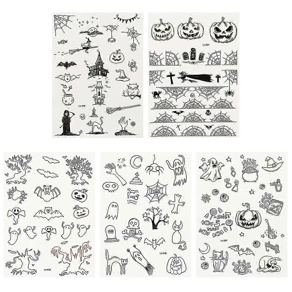 5 Sheets Halloween Waterproof Glow In Dark Stickers Luminous Tattoos Pastes