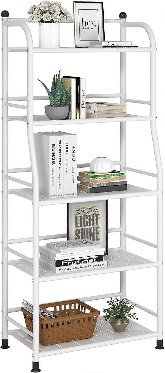 5 Tier Metal Shelf Storage Shelves Living Room Bookshelf Bathroom Corner Storage Rack for Kitchen,Indoor Plant Stand (Matte White, 5 Tier)