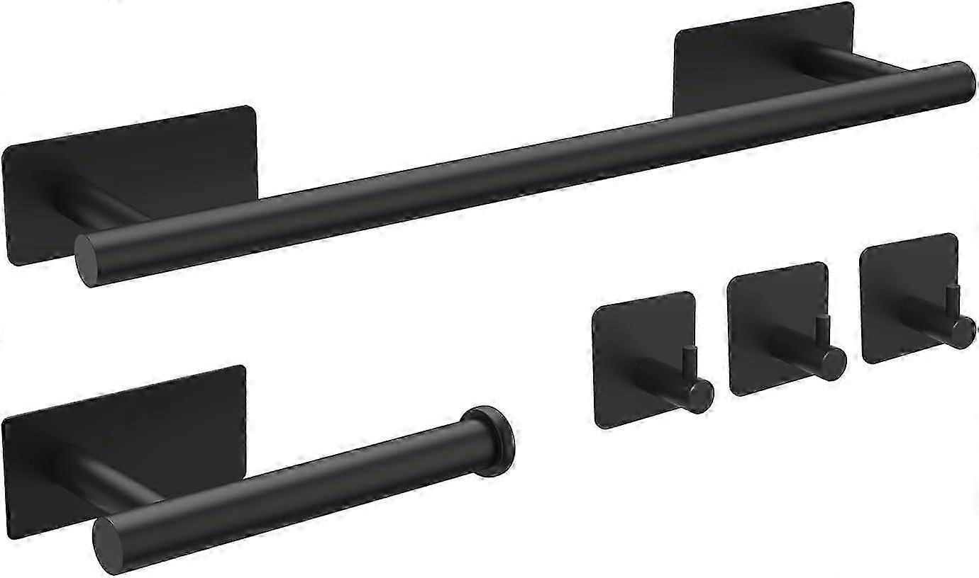 5pcs Bathroom Accessories Set, Black Toilet Roll Holder, Towel Rail, Hook, Wall Mounted or Self Adhesive, No Drilling M34452B 2025