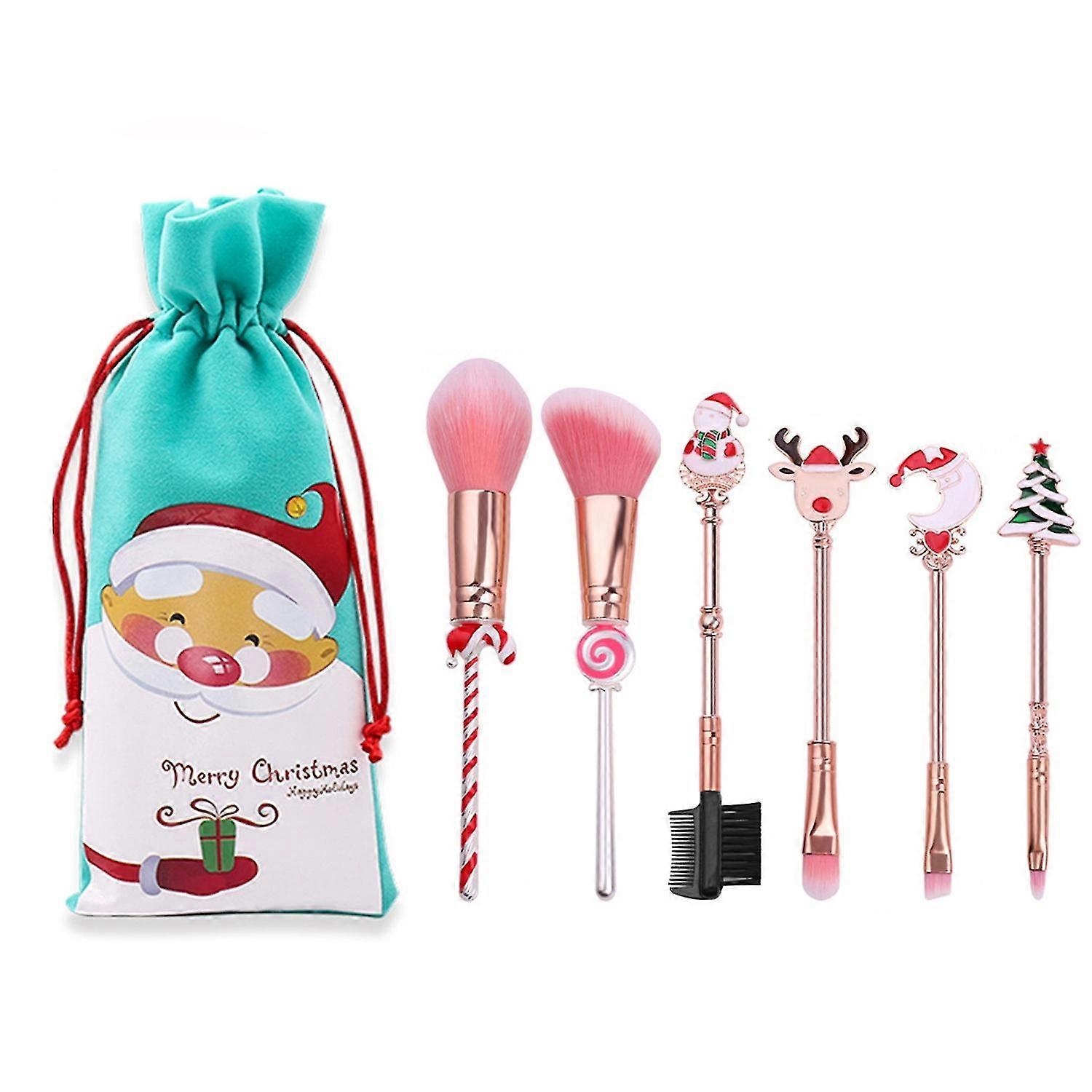 5Pcs/6Pcs Christmas Makeup Brushes Set Festive Design Artificial Fiber Durable Metal Handle Xmas