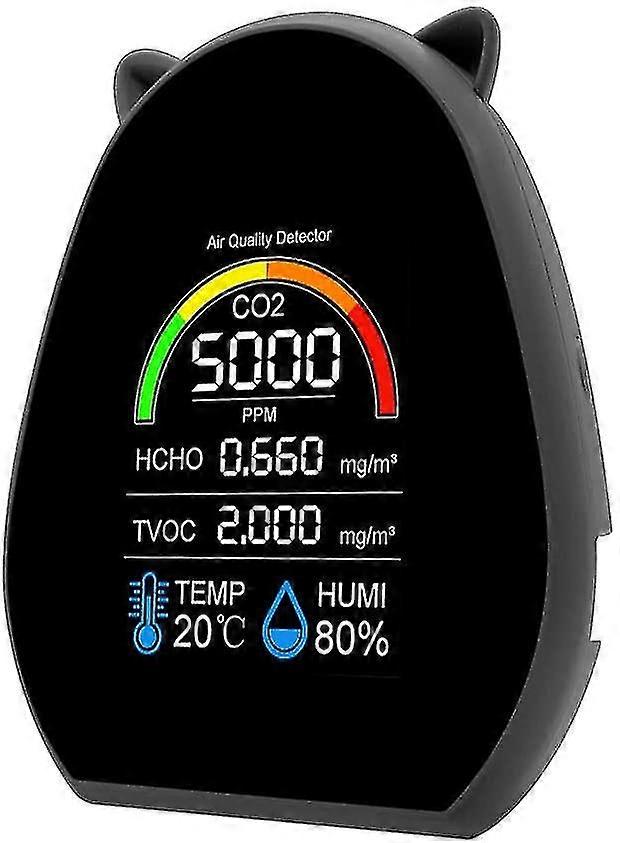5 In 1 Air Quality Detector, Multifunctional Co2 Tester With Carbon Dioxide Hcho Tvoc Value Electricity Quantity Temperature Humidity Display Function