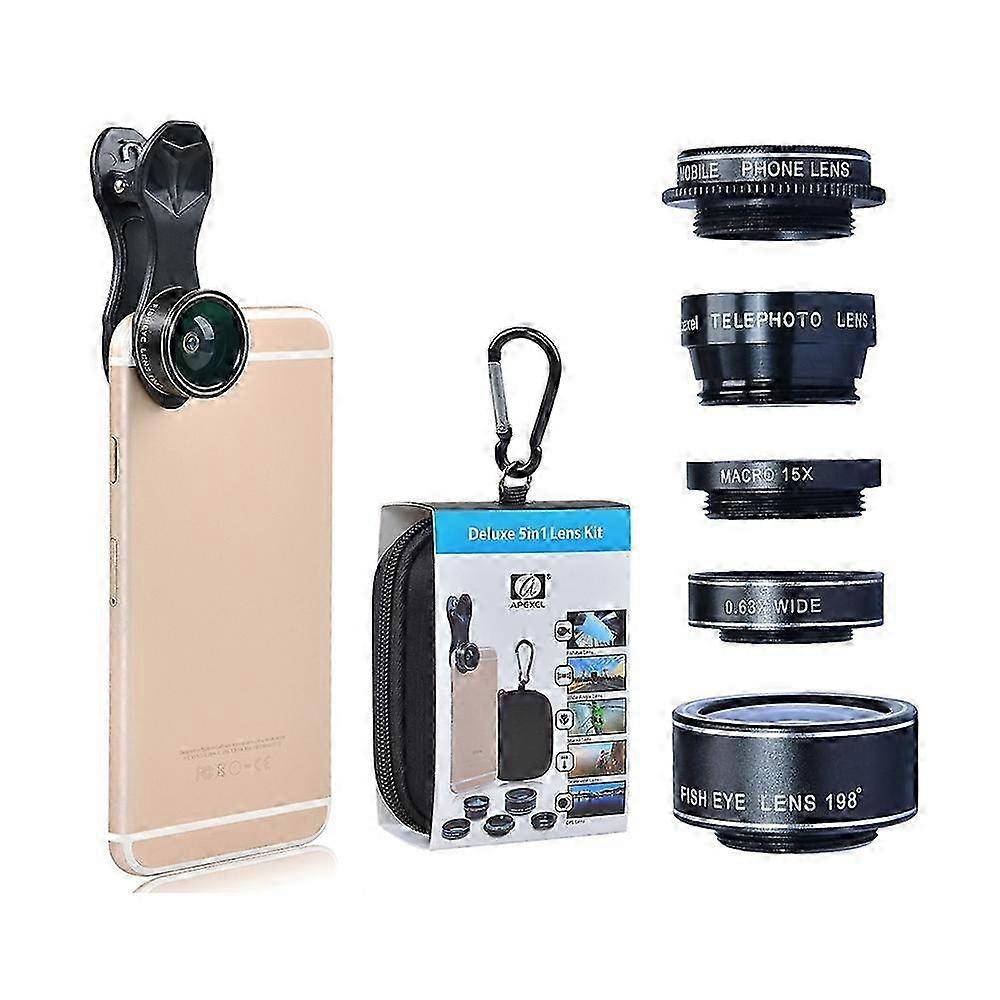 5-in-1 Fisheye Wide Angle Macro Telephoto CPL Lens for Mobile Phones