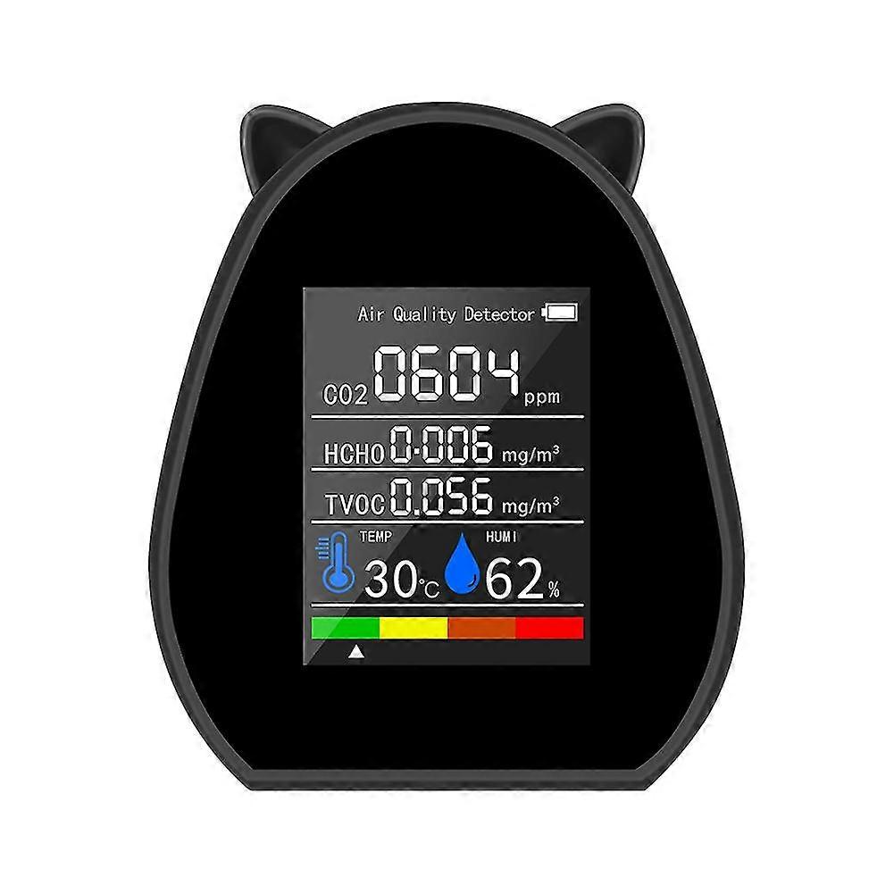 5 In 1 Co2 Air Detector Multi-functional Portable Digital Temperature And Humidity Display Function Tvoc Hcho Co2 Black