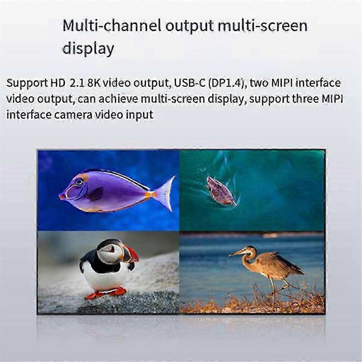 Adopts a of eight nuclear 64-bit processor of Ruixinwei RK3588S, Specifically, it is quad-core A76+ quad-core A55, which adopts 8nm process design, and its main frequency can reach up to 2.4GHz. It integrates ARM Mali-G610MP4GPU and embeds high-performance 3D. And 2D image acceleration module, built-in AI accelerator NPU with a computing power of up to 6Tops, supporting It has 8GB(LPDDR4/4x) memory, and has up to 8K display processing capacity Quoted quite a wealth of interfaces, including output, 26PIN expansion port, Type-C, M.2PCIe2.0, Gigabit Ethernet port, 2 USB2.0, 1 USB3.0, etc.; can be widely used in high-end flat panel, edge computing, artificial intelligence, cloud computing, AR/VR, smart security, smart home and other fields, covering industries of AIoT Supports the operating systems Orangepi OS(Droid), Orangepi OS(Arch) and Orangepi OS(OH) officially developed by , and also supports , Debian, Android12 and other operating systems 8K video codec The image is clearer and the picture quality is more delicate. It supports 8K@60fps, and its powerful video encoding and decoding capability makes the picture appear in 8K HD On-board 1000Mbps Ethernet, connection is stronger, more stable and the transmission is higher.Support 2.1 8K video output, USB-C(DP1.4) and two MIPI interfaces. Video output, multi-screen display, support for three MIPI interface cameras video input Name:Development Board Chip Model:RK3588S Be Applicable:For 5 Processor:RK3588S eight-core 64-bit processor Benefits:Rockchip RK3588S eight-core 64-bit processor Main frequency up to 2.4GHz Support 8K video codec Colour:As Shown Material:PCB style:8GB Due to different batches, there may be differences in product appearance and printed text, which not affect use Package Contents: 1 * Development Board Only the above package content, other products are not included.Note: Light reflection and different displays may cause the color of the item in the picture a little different from the real thing. The measurement allowed error is +/- 1-3cm.