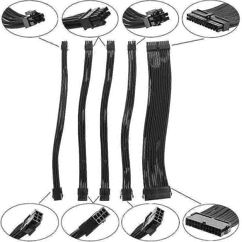 5 PCS 18AWG Sleeved PSU Extension Power Cord / Cable Kits ATX 24Pin / 8P(4+4P )