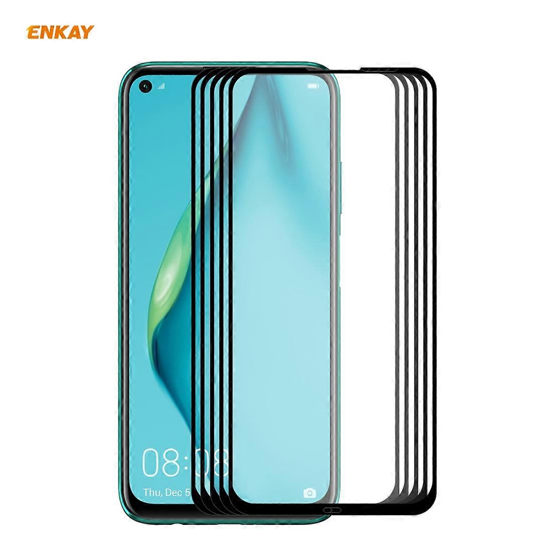 5 PCS ENKAY Hat-Prince Full Glue 0.26mm 9H 2.5D Tempered Glass Full Coverage Film For Huawei P40 Lite