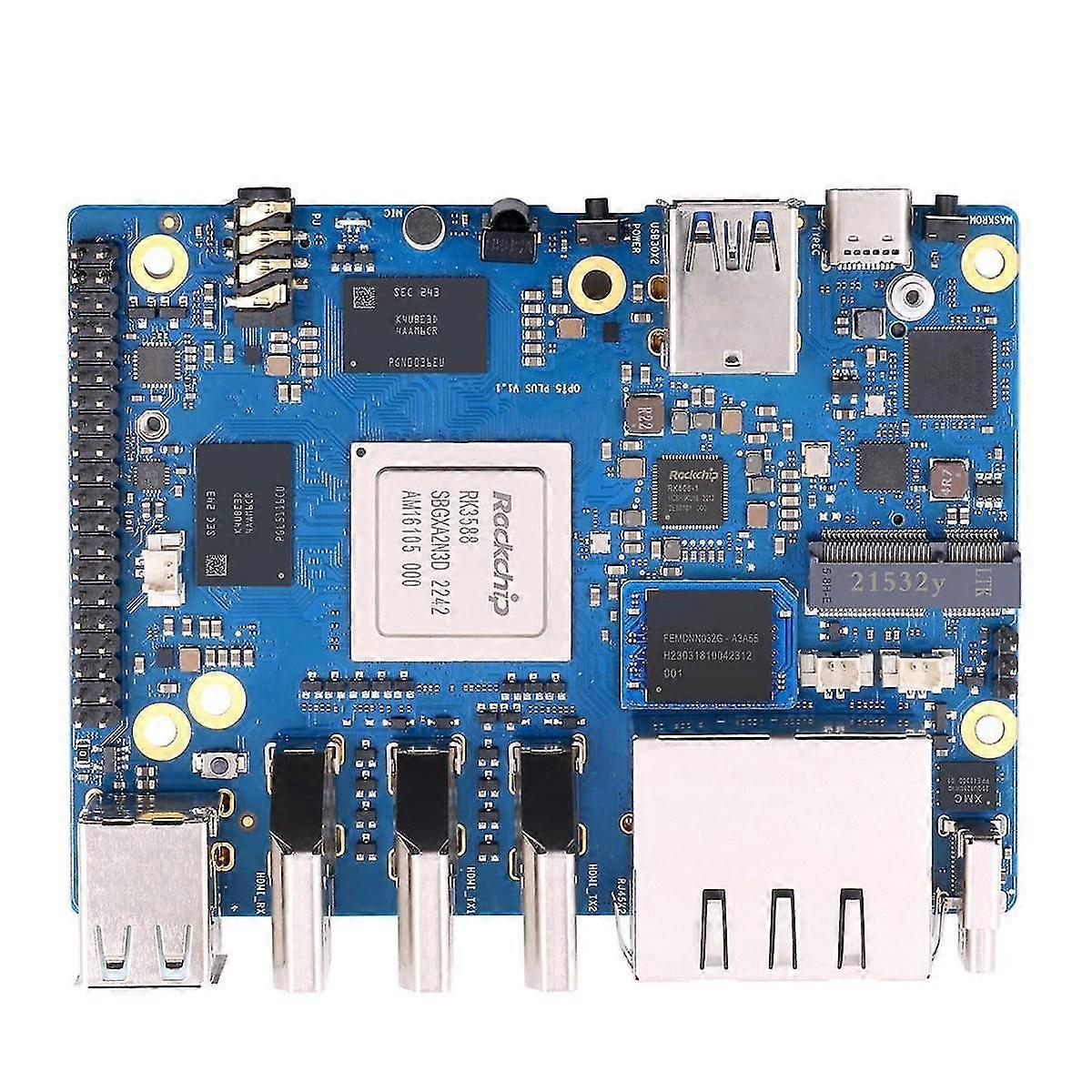 for 5Plus has rich interfaces, including 2 output ports and 1 input port, which can decode up to 8K@60P video, two PCIe extended 2.5G Ethernet ports, and is equipped with an M2 M- Key slot, an M.2 E-Key slot that supports Wi-Fi6/BT module.
