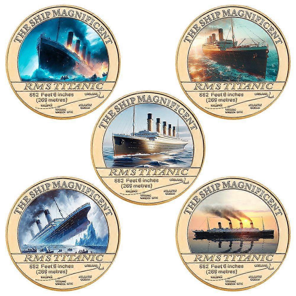 Set of 5 RMS Titanic Gold Commemorative Coins Set Souvenir of the Magnificent Tragedy of the Titanic Gifts for Christmas Metal Collection