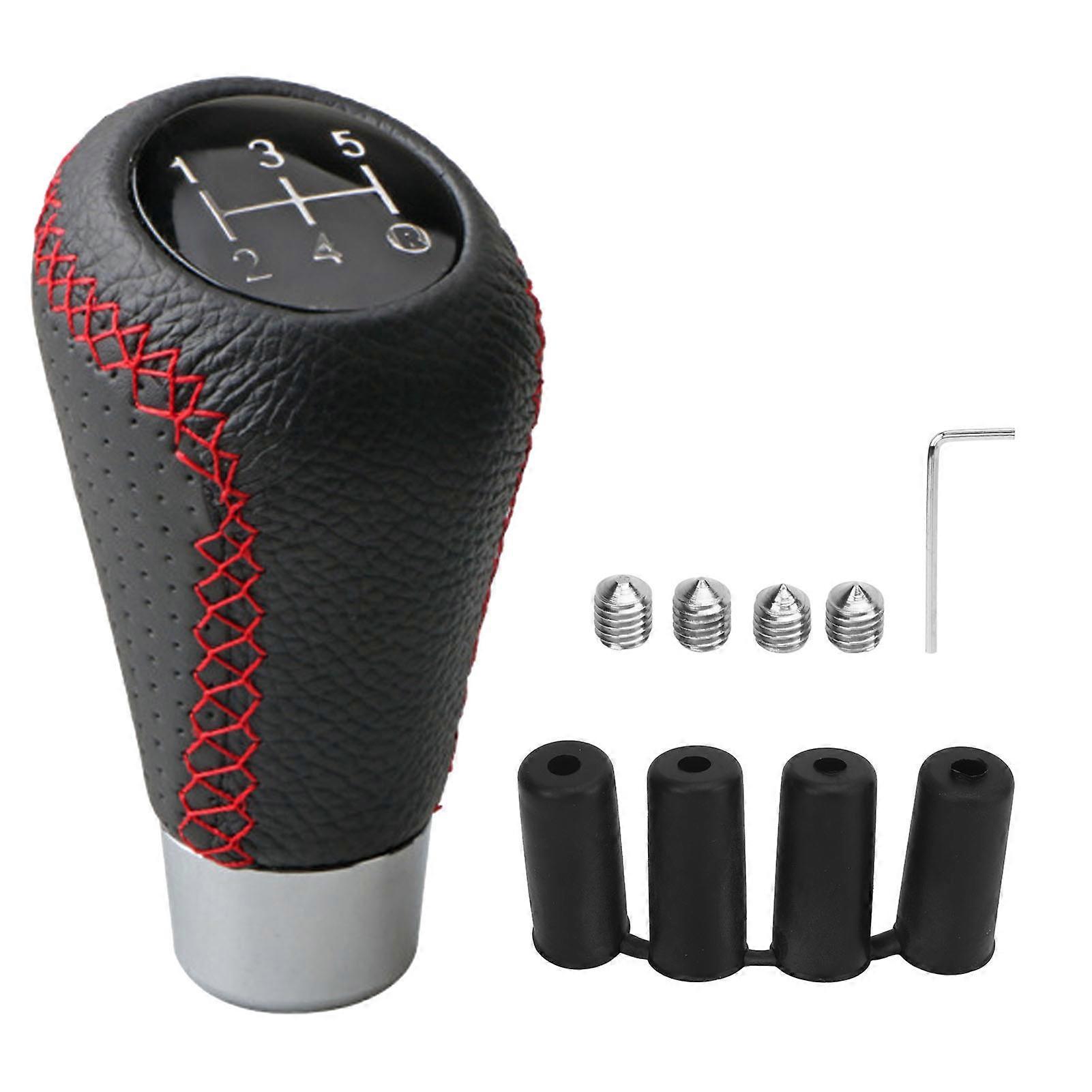5 Speed Gear Shifter Head Genuine Leather Gear Shifter Knob Head Universal for Manual Gear Cars Red Line