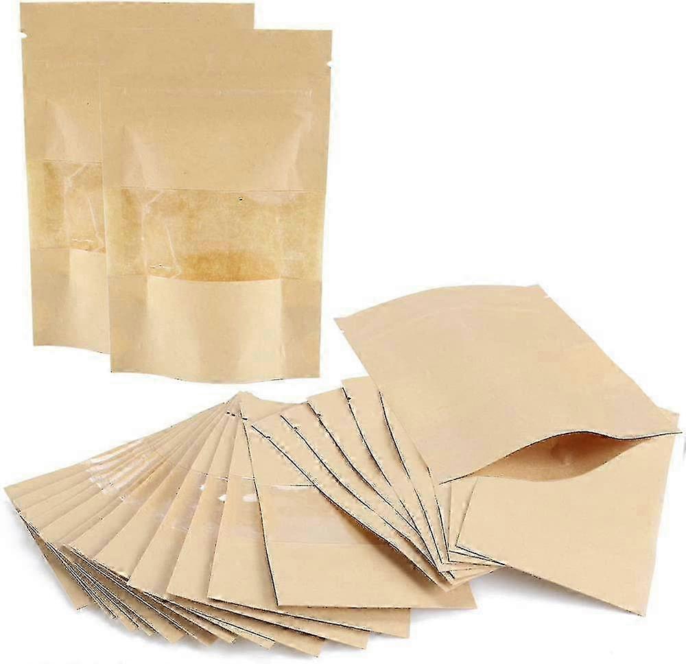 50-Piece Kraft Paper Self-Seal Windowed Stand-Up Pouches with Zip Lock 5.5x3.5 Inches