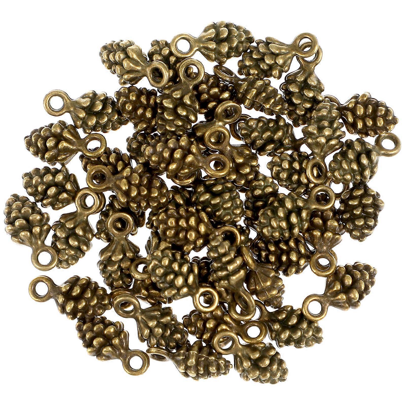 50pcs Christmas Pine Cone Alloy Small Pendant Nature Nuts Charm for DIY Jewelry Making Accessories (Antique Brass)