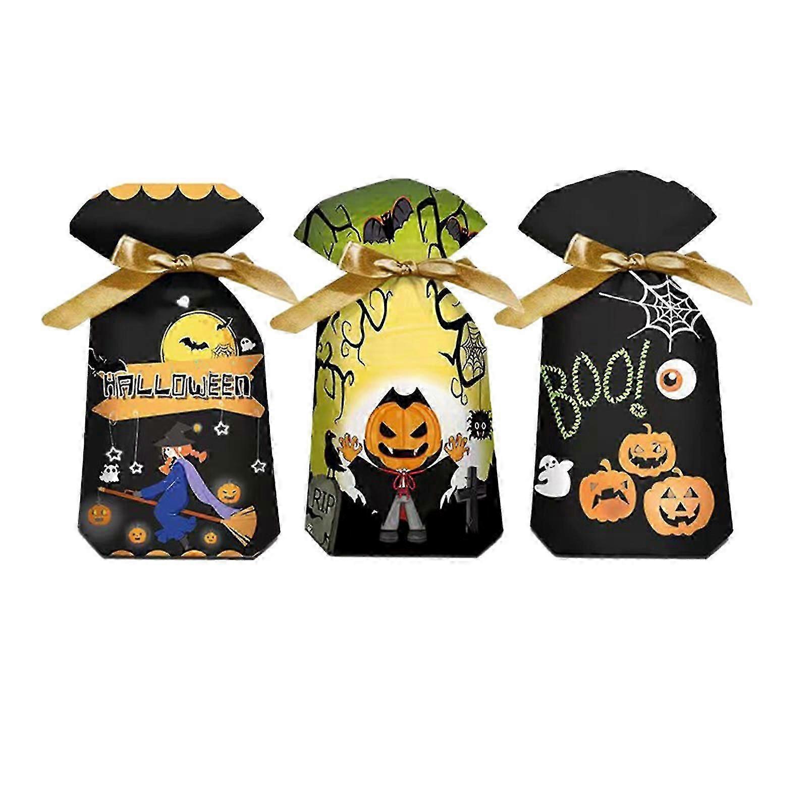 50pcs Halloween Candy Bags Drawstring Design With Halloween Element Patterns Delicate Halloween Gift Wrapping Bags Y
