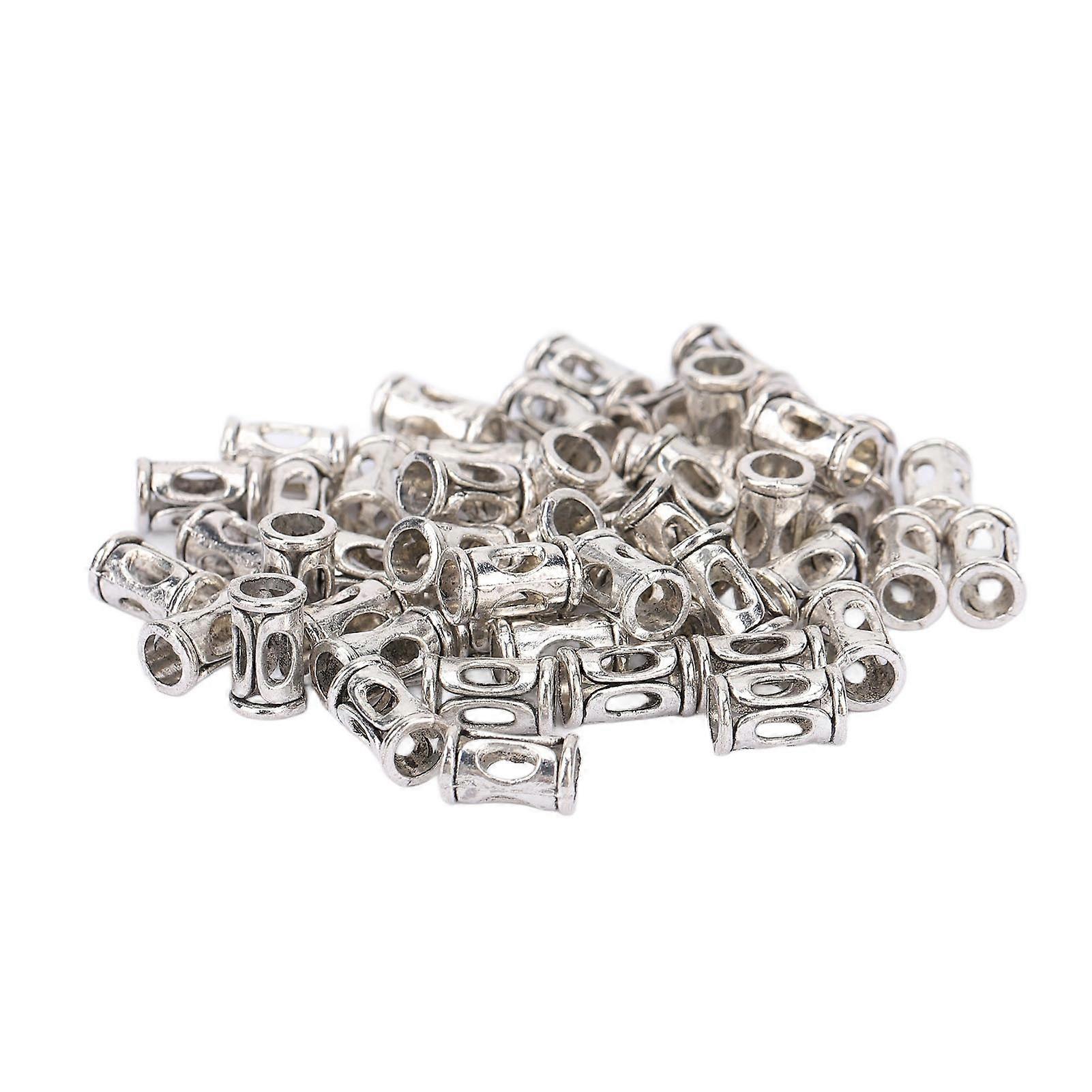 50 Pcs Beard Beads Dark Silver Tubular Porous Alloy Beard Beads Beaded Diy Hand Made Metal Spacer Beads
