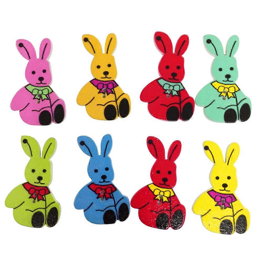 50pcs Colorful Wooden Rabbit Buttons, Two Hole Design, for DIY Sewing, Crafting, Clothing, and Scrapbooking Projects