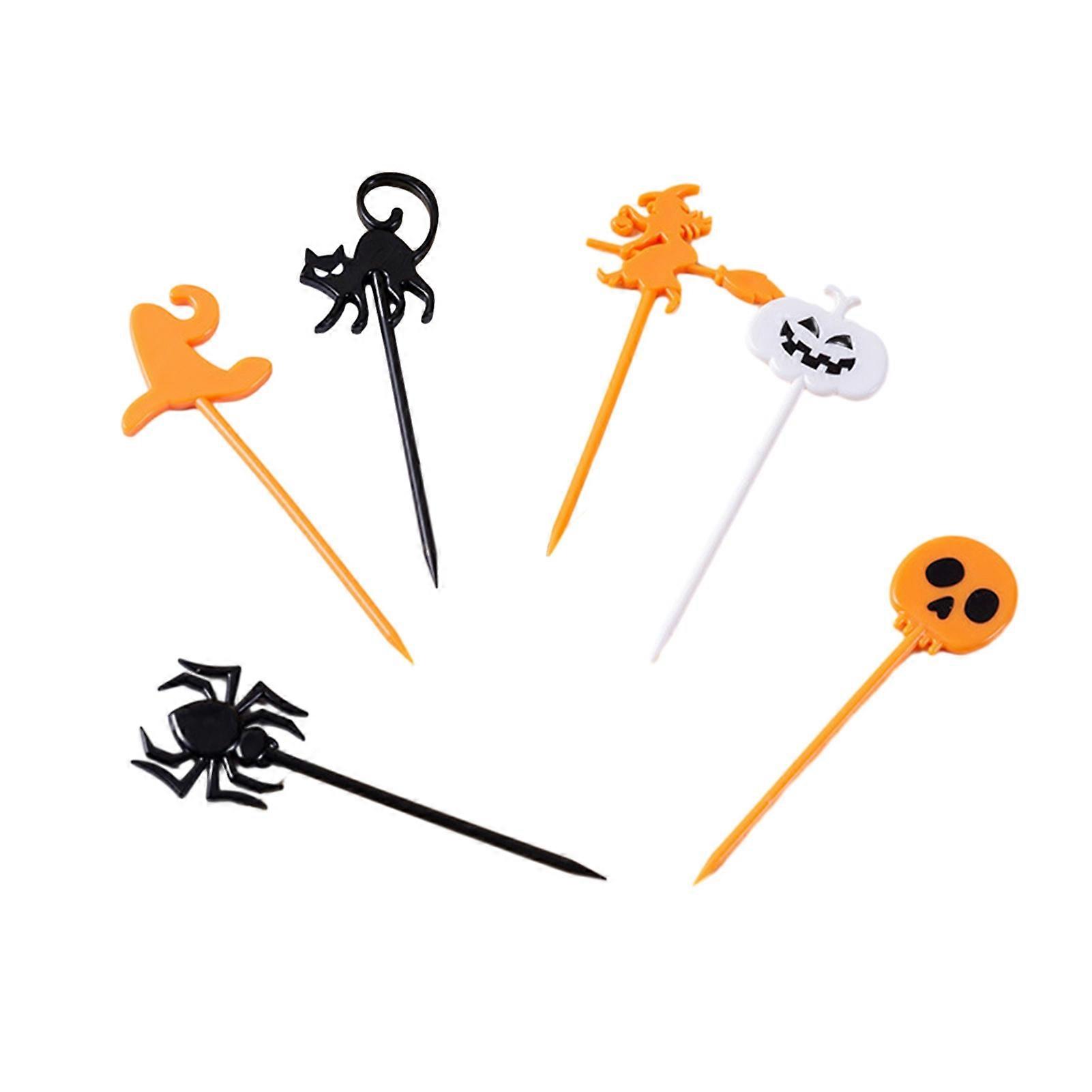 50Pcs Ghost Bat Pumpkin Shape Cupcake Toppers Halloween Picks Food Cocktail Appetizer Picks Baby Shower Birthday Party Fruit Forks KAESI