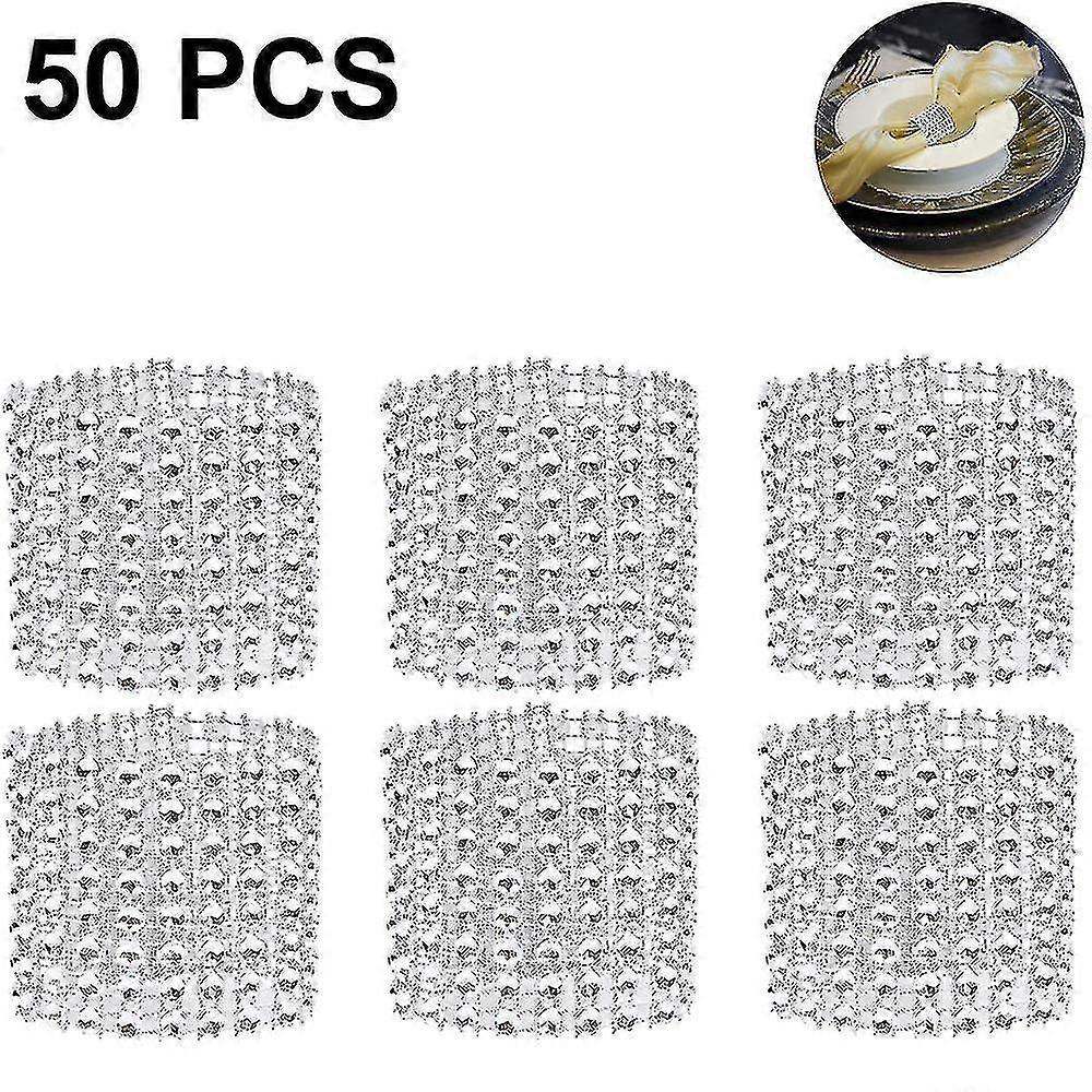 50pcs Napkin Rings, Rhinestone Napkin Rings Diamond Adornment,silver