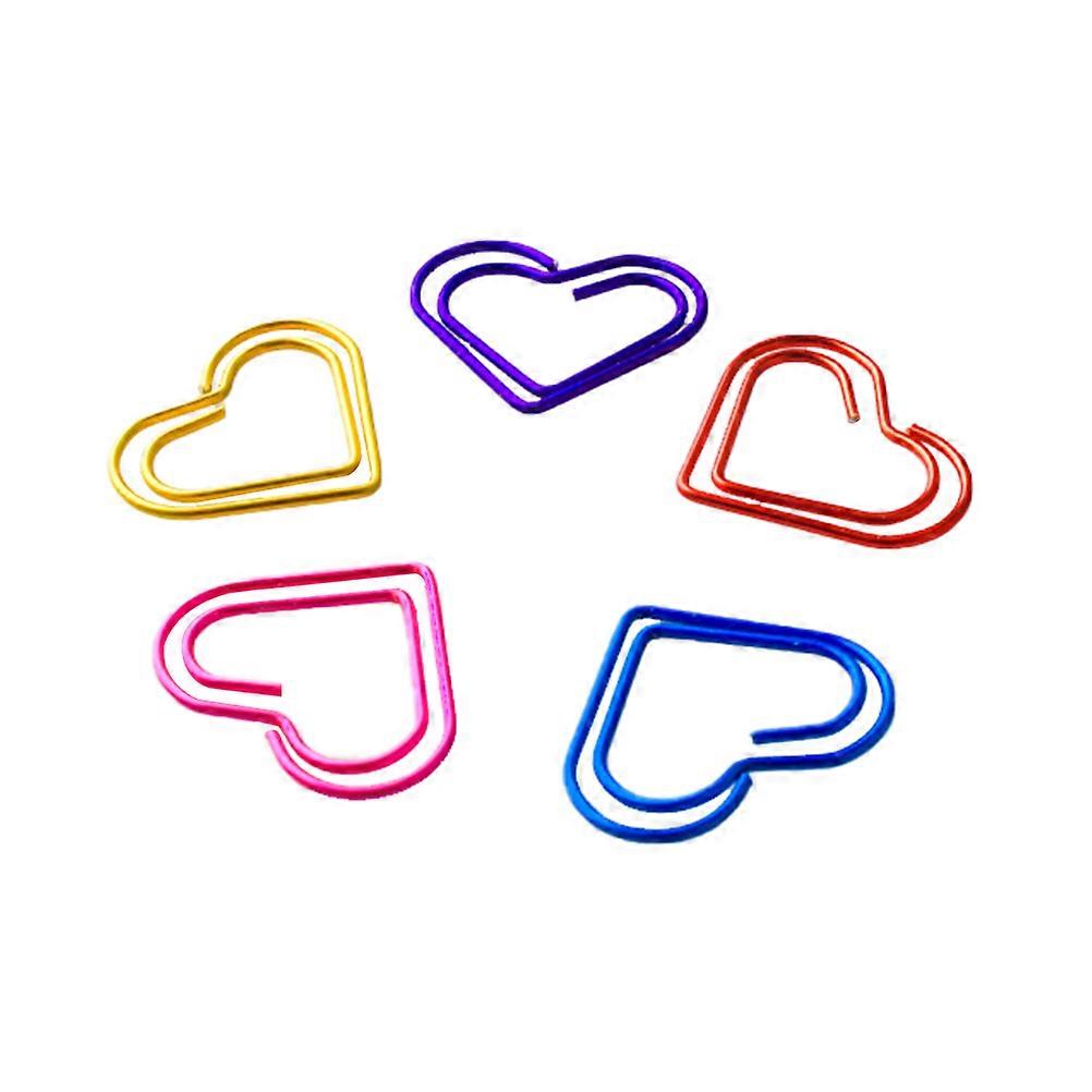 50Pcs Heart Shaped Paper Clip Colorful Paper Holder Creative Simple Metal Bookmark Paper Clamp (Red + Blue + Yellow + Purple + Pink, 10Pcs Each)
