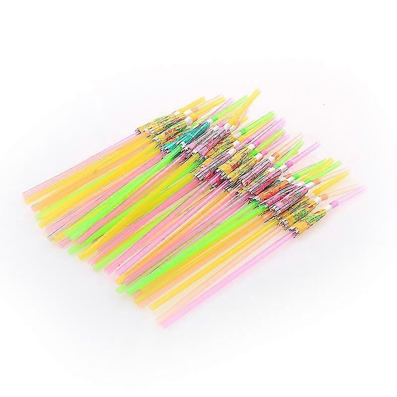 50Pcs Fruit Juice Cocktail Straws Beach Party Umbrella Plastic Drinking Straws