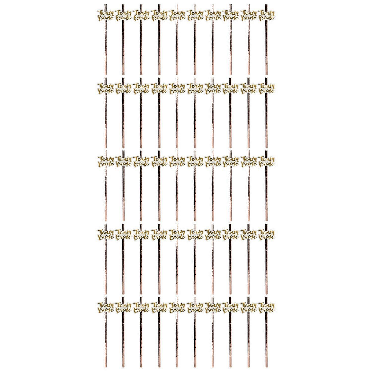 50Pcs Rose Gold Straws Rose Gold Durable Nontoxic Paper Elegant Design Gold Paper Straws with Cards