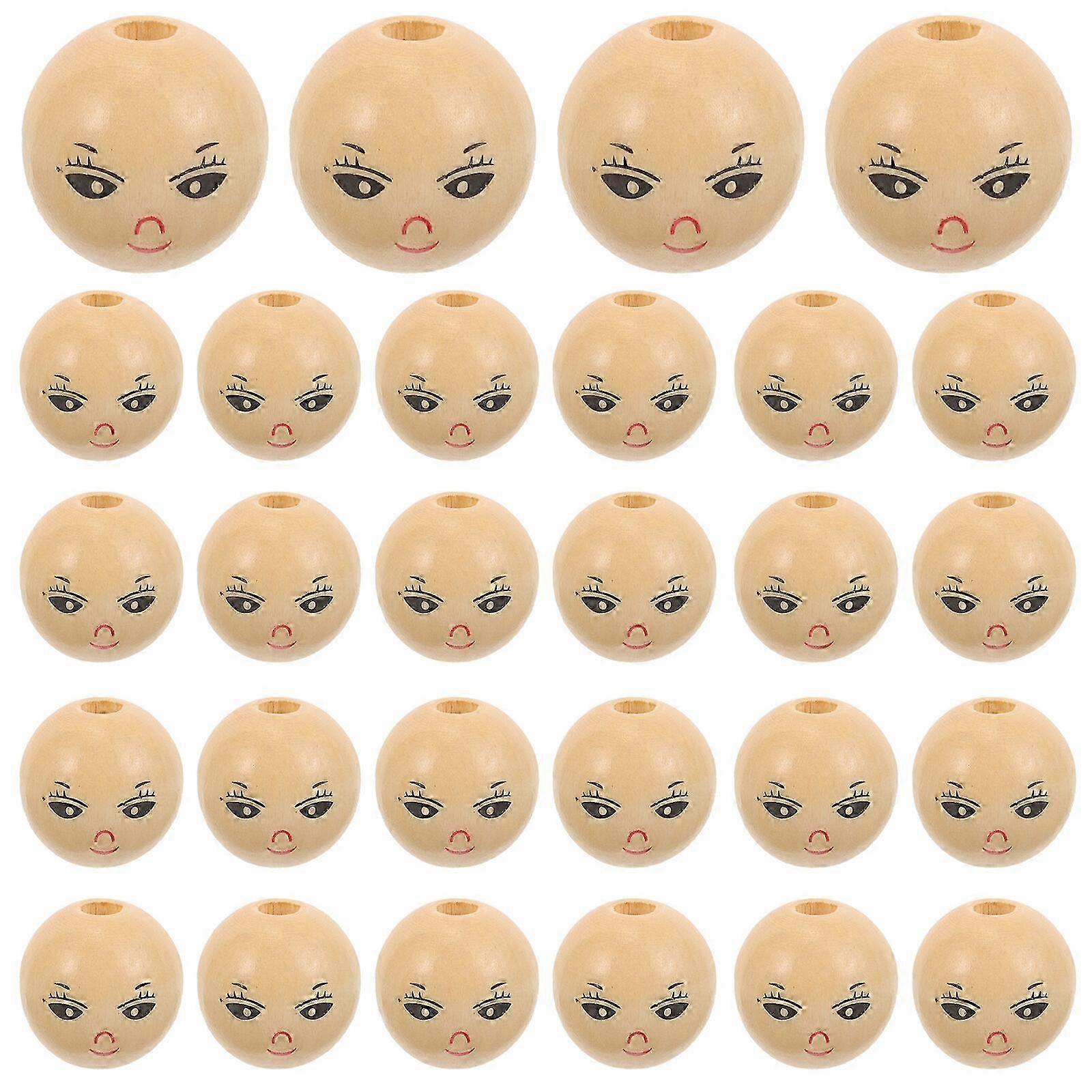 50Pcs Round Wooden Smile Face Beads - Wooden Loose Spacer Beads with Holes for Crafting and DIY Projects