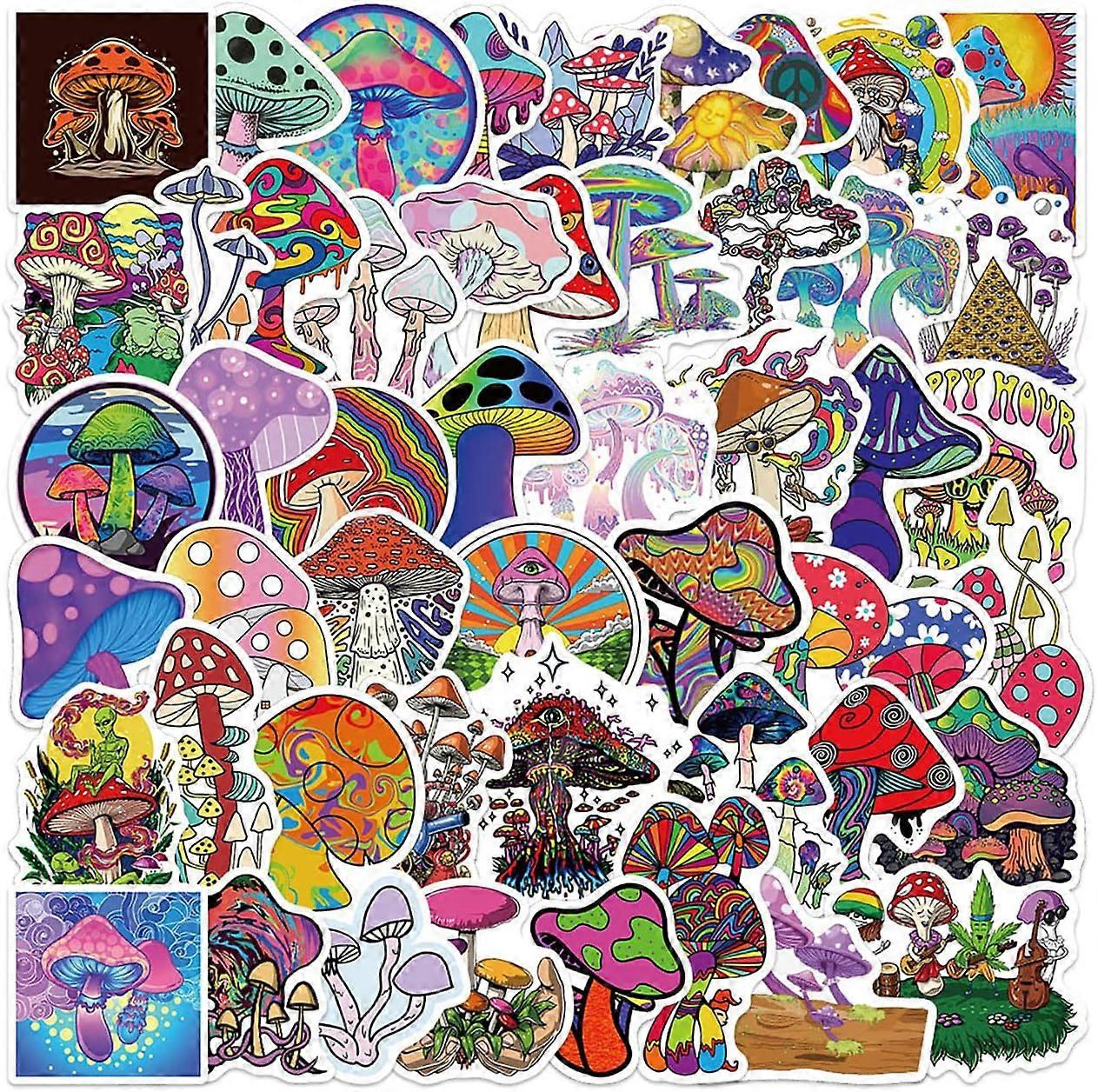 50 Pcs Polychrome Mushroom Stickers, Water Bottle Stickers, Vinyl Stickers for Laptop, Skateboard