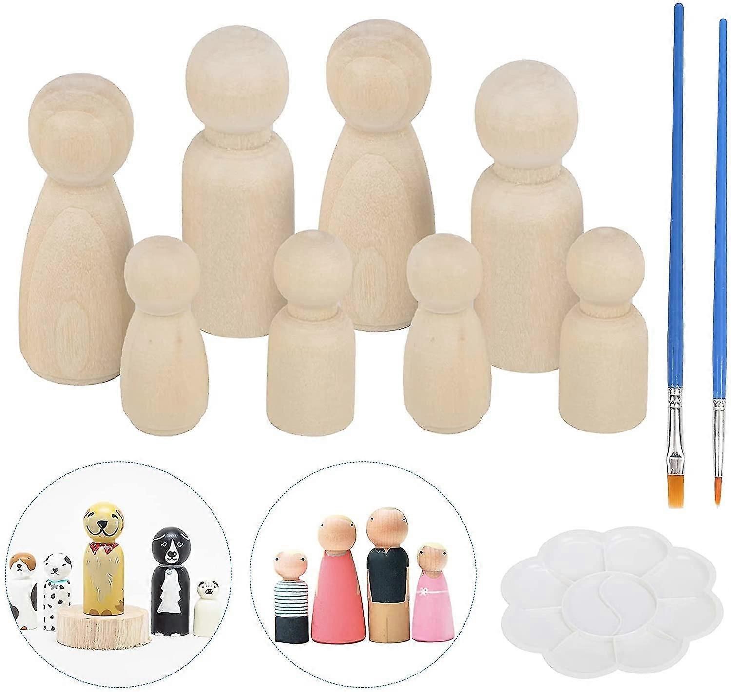50pcs Wooden Peg Doll Set Nature Wooden People Unfinished Decorative Diy Dolls