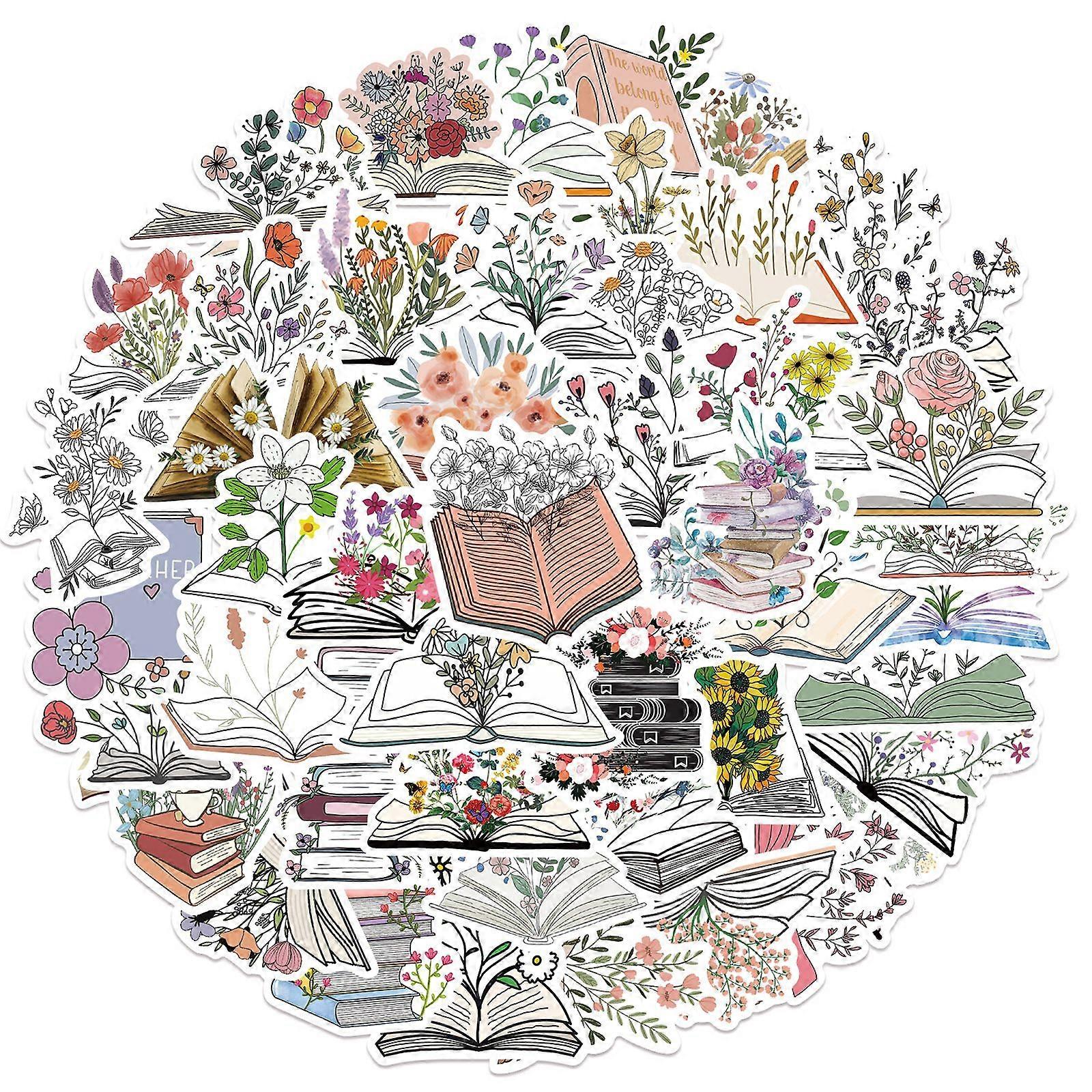 50Pcs Flower Stickers for Books Reading Stickers for Water Bottles Bookish Stickers for Library Supplies