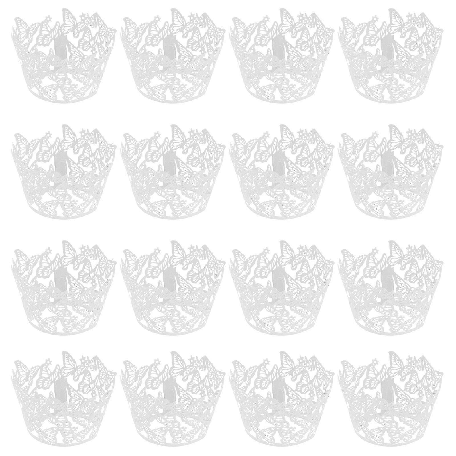 50Pcs White Hollow Butterfly Cake Wrappers, 21x5x0.1cm Baking Liners