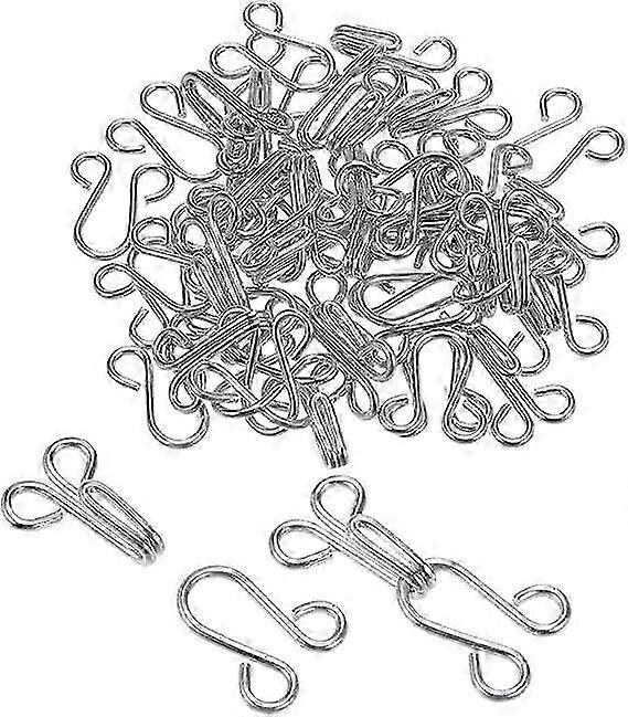 50pcs Sewing Hooks and Eyes Closure - [ 29mm x 11.5mm ] Copper for Bra Trousers Clothing DIY Use | Silver Tone--