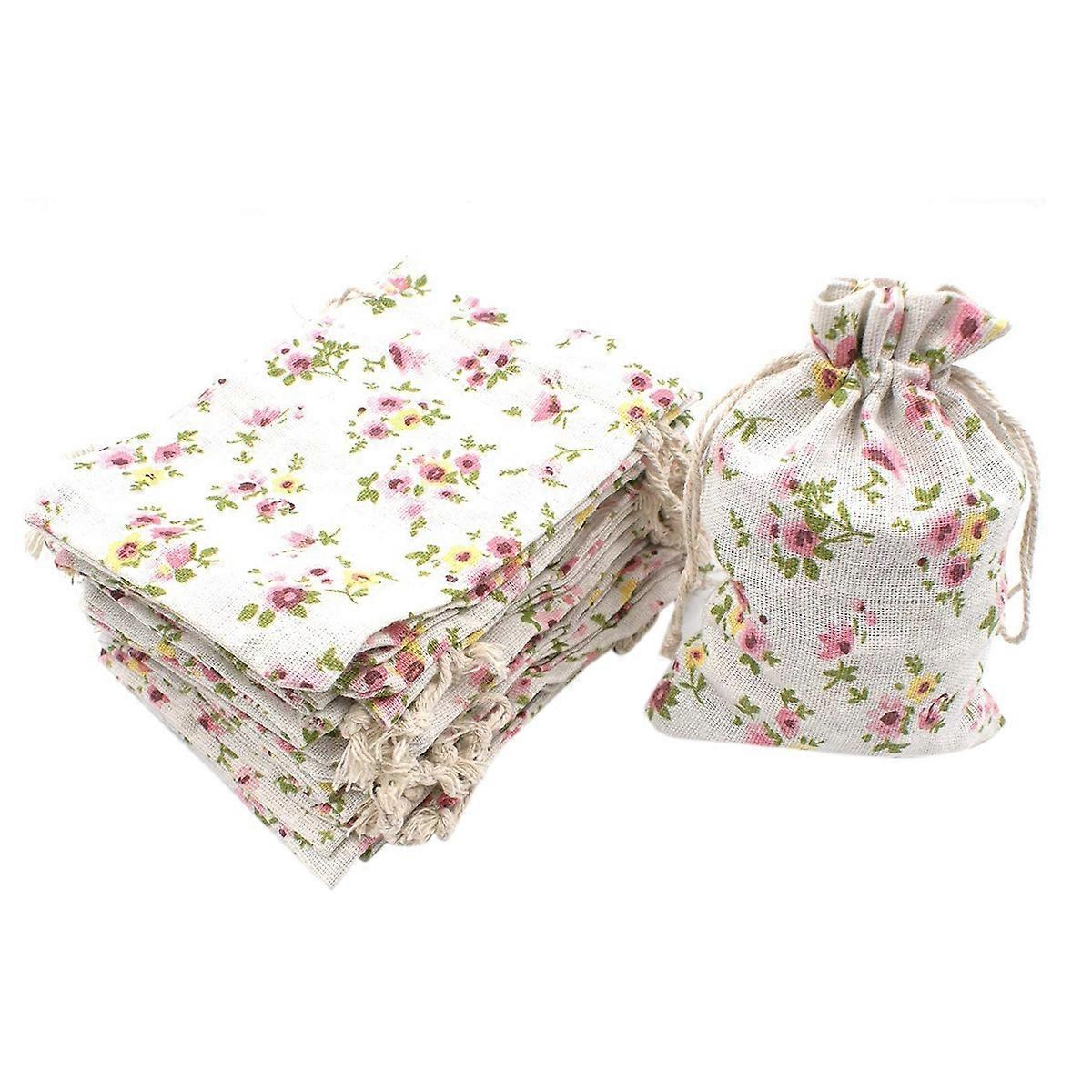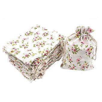50Pcs Floral Burlap Drawstring Bags Linen for Christmas Wedding Party