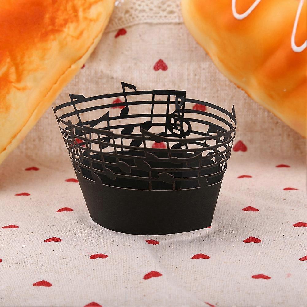 50Pcs Musical Notes Cupcake Paper Wrappers Black 80mm Diameter
