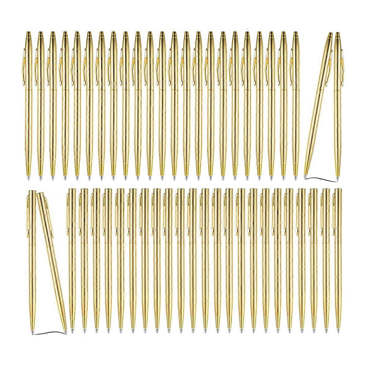 50Pcs Gold Metallic Slim Ballpoint Pens Retractable Black Ink Mini Conical Pens 1.0mm Penpoint Supplies for Wedding Home