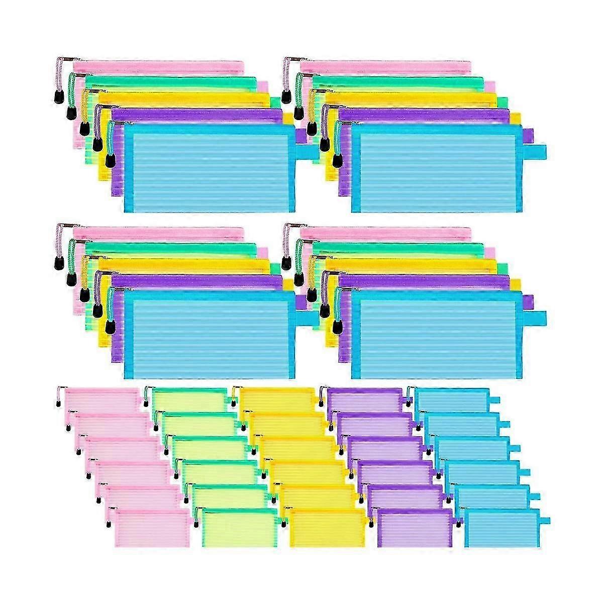 50Pack School Supplies Zipper Mesh Pouch Pencil Pen Case Pencil Storage Pouches Bulk Pencil Bag Mul