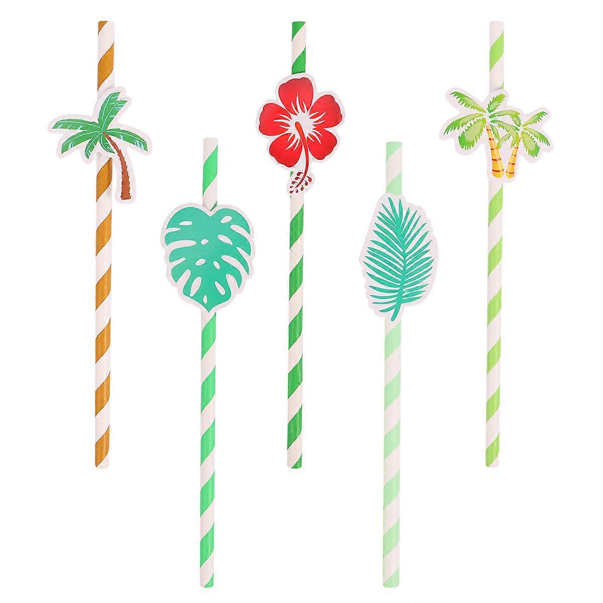 50 Pcs Hawaii Plants Animal Cards Paper Straws Colorful Printing Theme Party Drinking Straws Party Supplies (Double Tree, Coconut Tree, Flower, Stripe