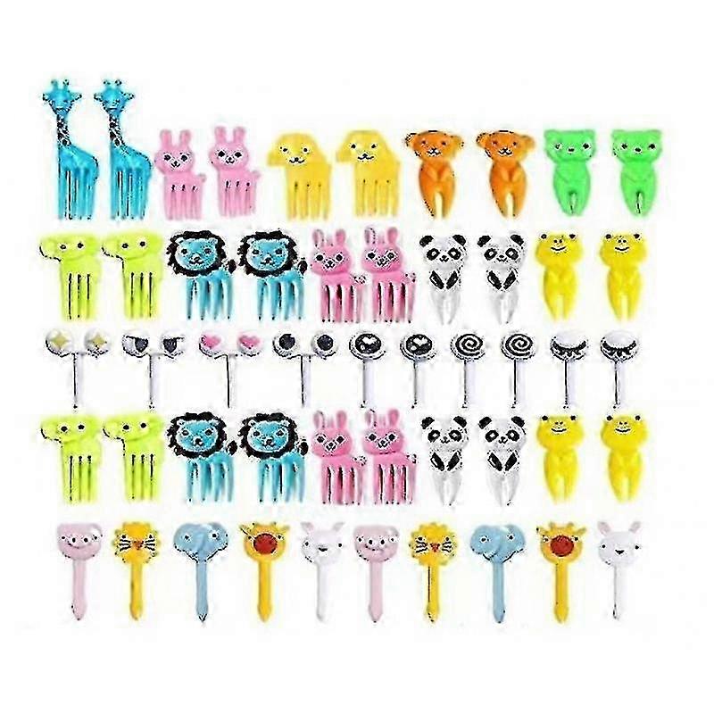 50pcs Mini Dessert Fork Kids Plastic Decorative Cartoon Toothpick Sticks