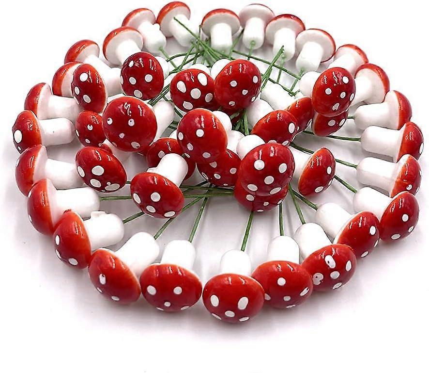 50 Pieces Mini Mushroom Miniatures Artificial Garden Fairy Bonsai Plant Pot Resin Craft Decoration for Home DIY Micro Landscape Decor (Red) Red