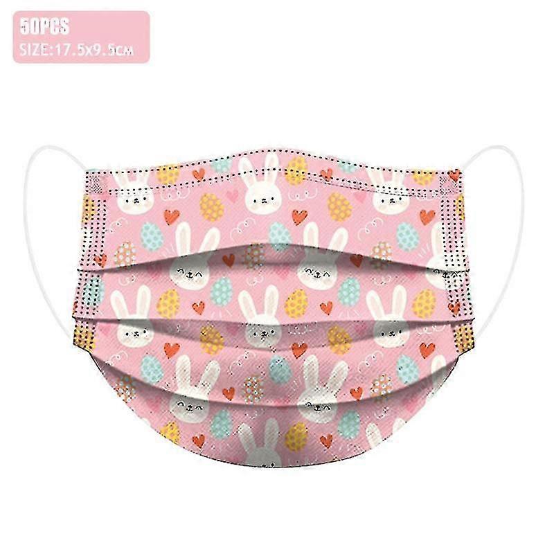 50 Pcs Disposable Easter Face Mask Melt Blown Cloth Cute Rabbit Bunny Printed Designs