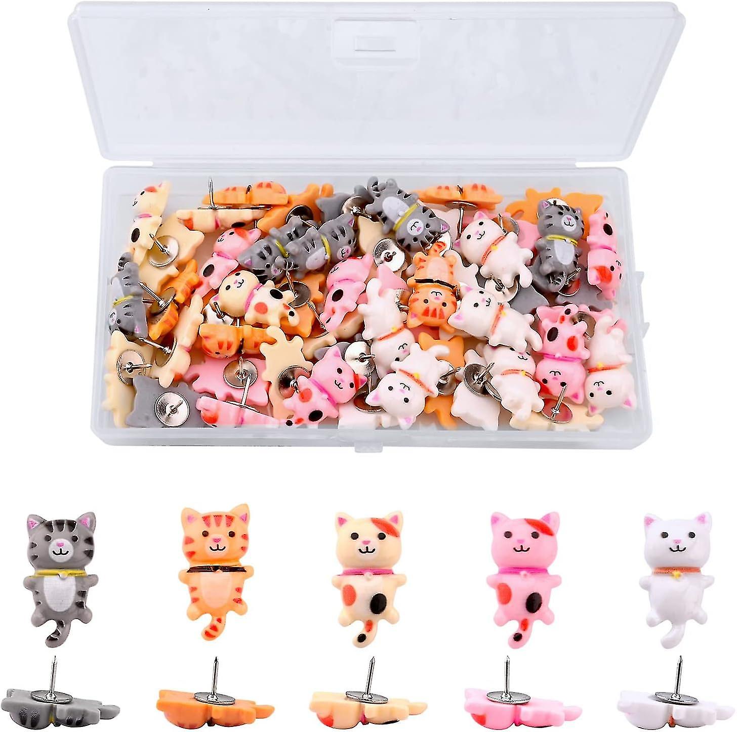 50 Pieces Cat Thumbtack Plastic Head Thumb Tacks Animal Decorative Push Pins for Bulletin Board Wall Office School Home Use