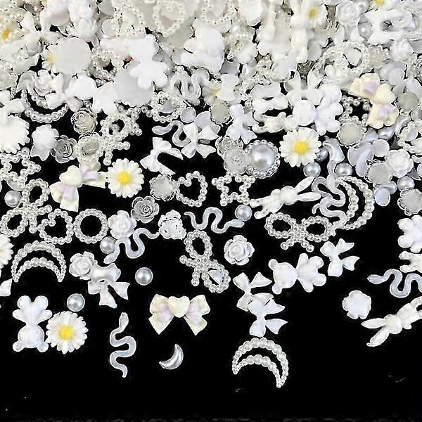 50 pcs 3D Flatback Nail Charms Luminous Nail Art Decorations with Flowers, Hearts, Bunnies, Butterflies