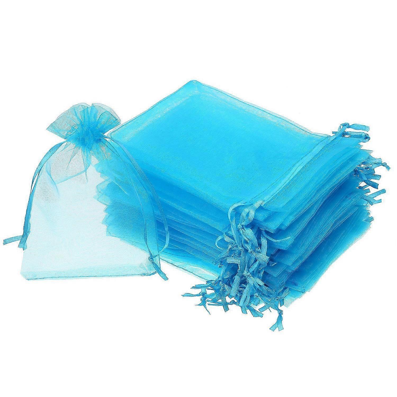50 Pieces 4 by 6 Inch Organza Gift Bags Drawstring Jewelry Pouches Wedding Party Favor Bags (Aqua B