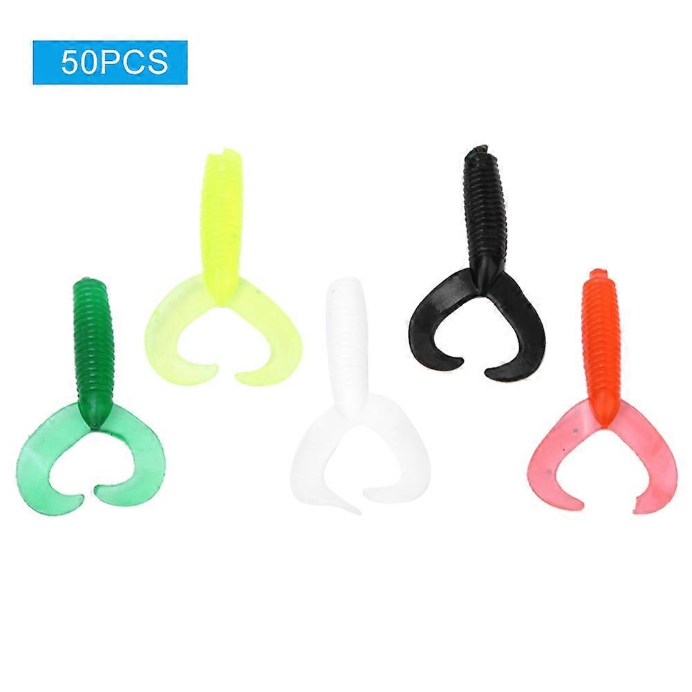 50 pcs 5 Colors Double Tail Soft Rubber Artificial Fishing Lures Baits Fish Tackle Accessories Kit