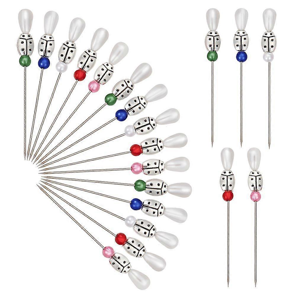50 Pcs 5 Colors Decorative Sewing Pins Ladybird Theme Pearl Head Pins Wedding Bouquet Pins Straight Quilting Pin 2.17 Inch Dressmaker Pins for DIY Sew