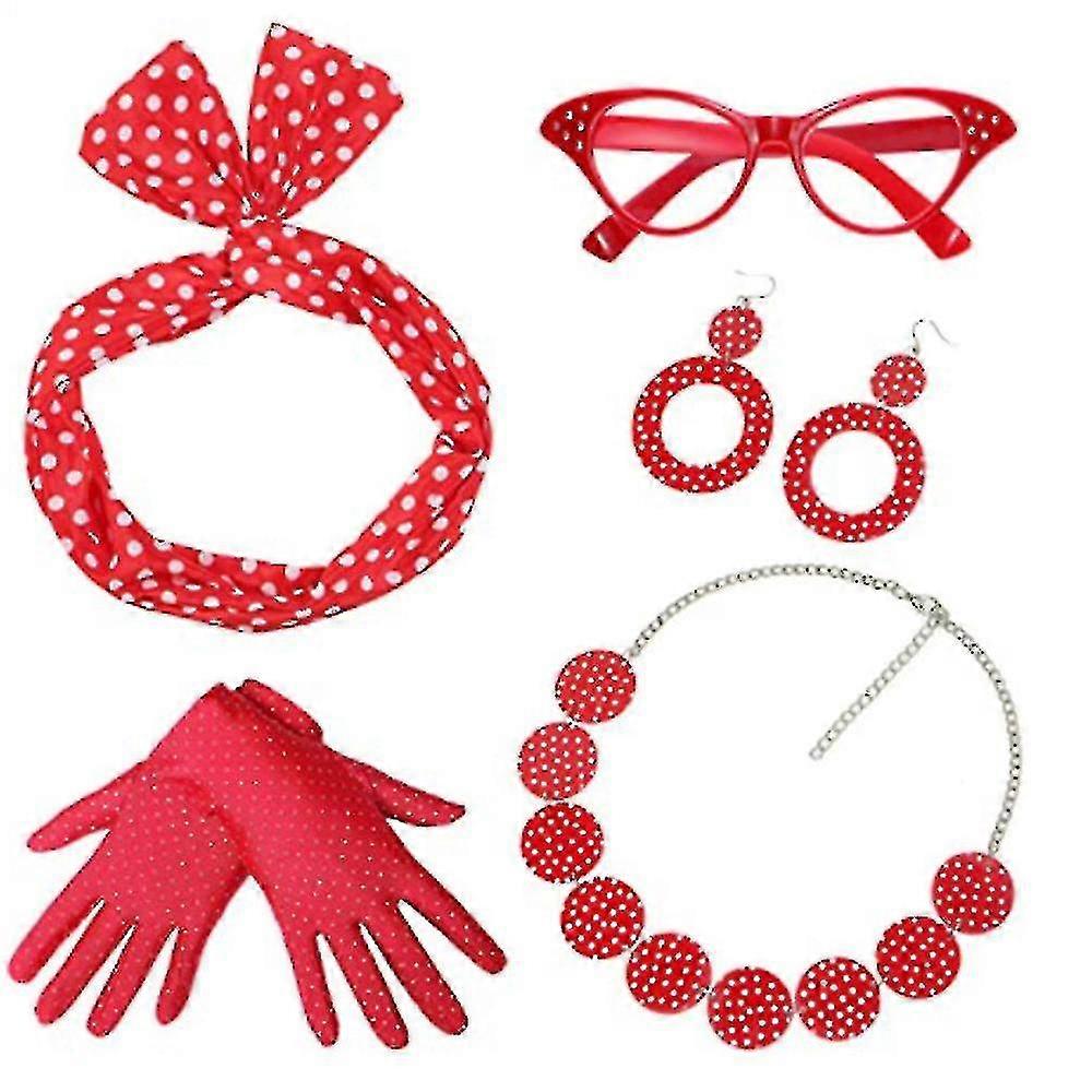 50s Costume Accessories Set Lady Cat Eye Glasses Bandana Tie Headband Earrings Necklace Gloves Gifts