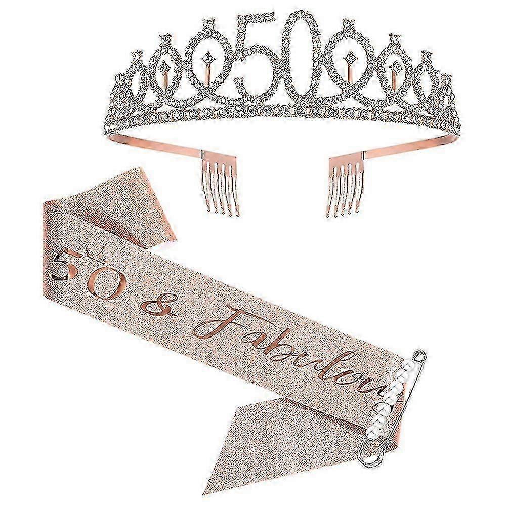 50th Birthday Rose Gold Sash Crown 50 Sash Tiara Supplies For Women Ladies
