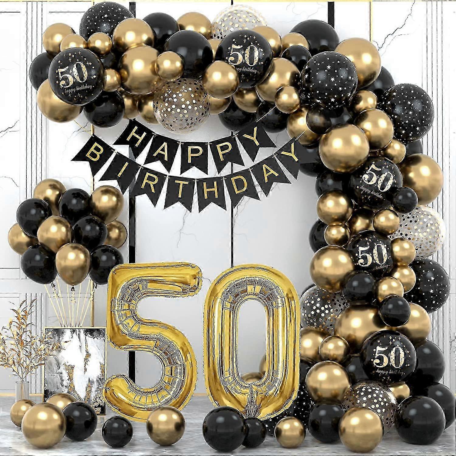 50th Birthday Decorations: Black Gold Garland Balloons for Men & Women