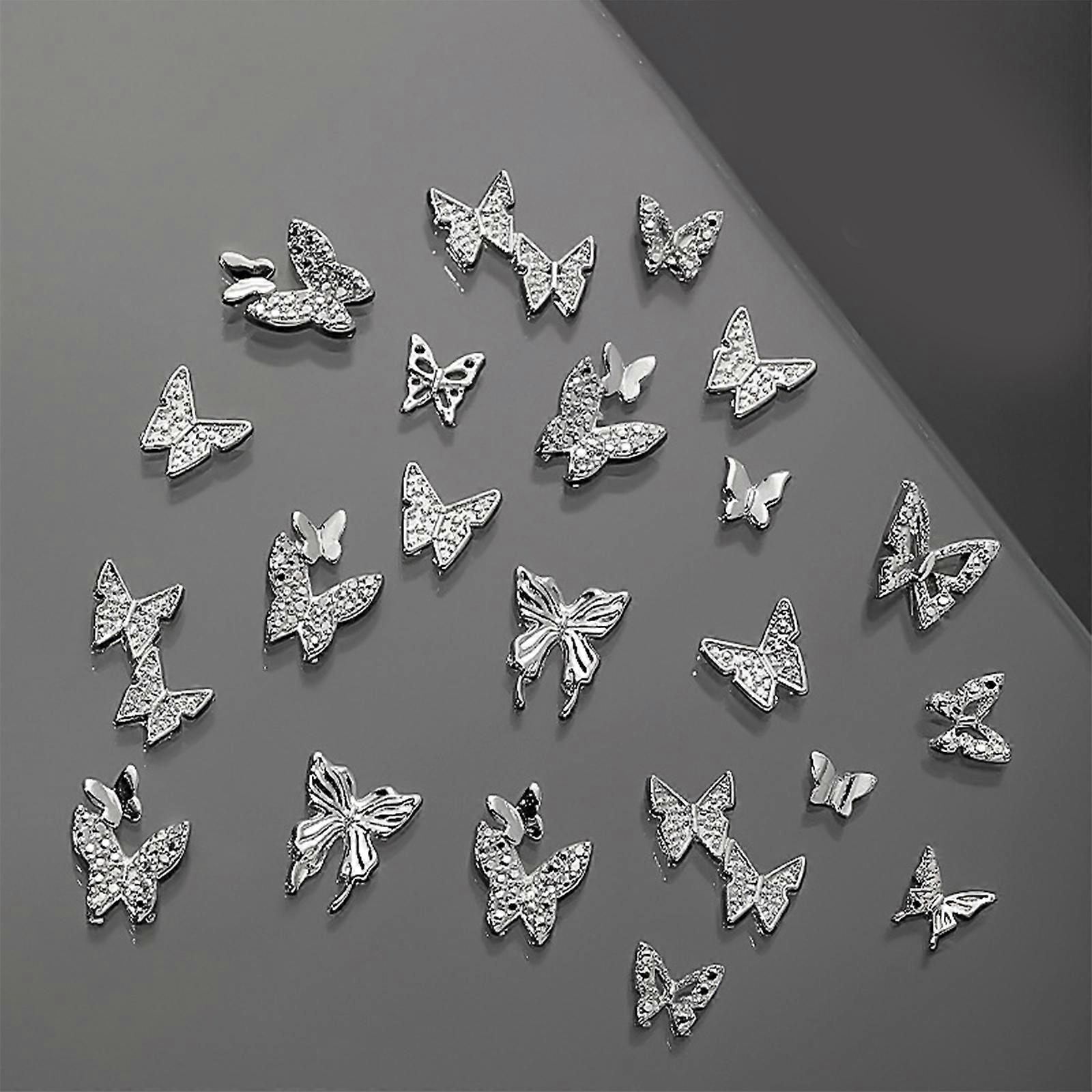 Pack of 50 Butterfly Nail Charms Silver Butterfly Nail Gems 3D Metallic Butterflies Nail Rhinestones for Acrylic Nails