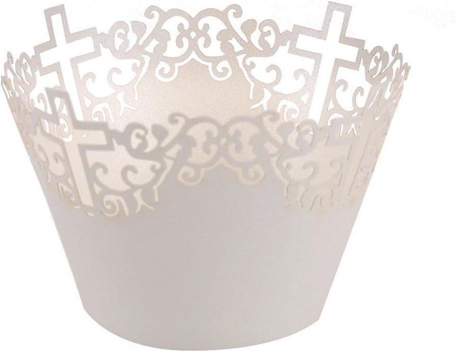 50 x Cupcake Wrappers - White Cross Design Paper Cases