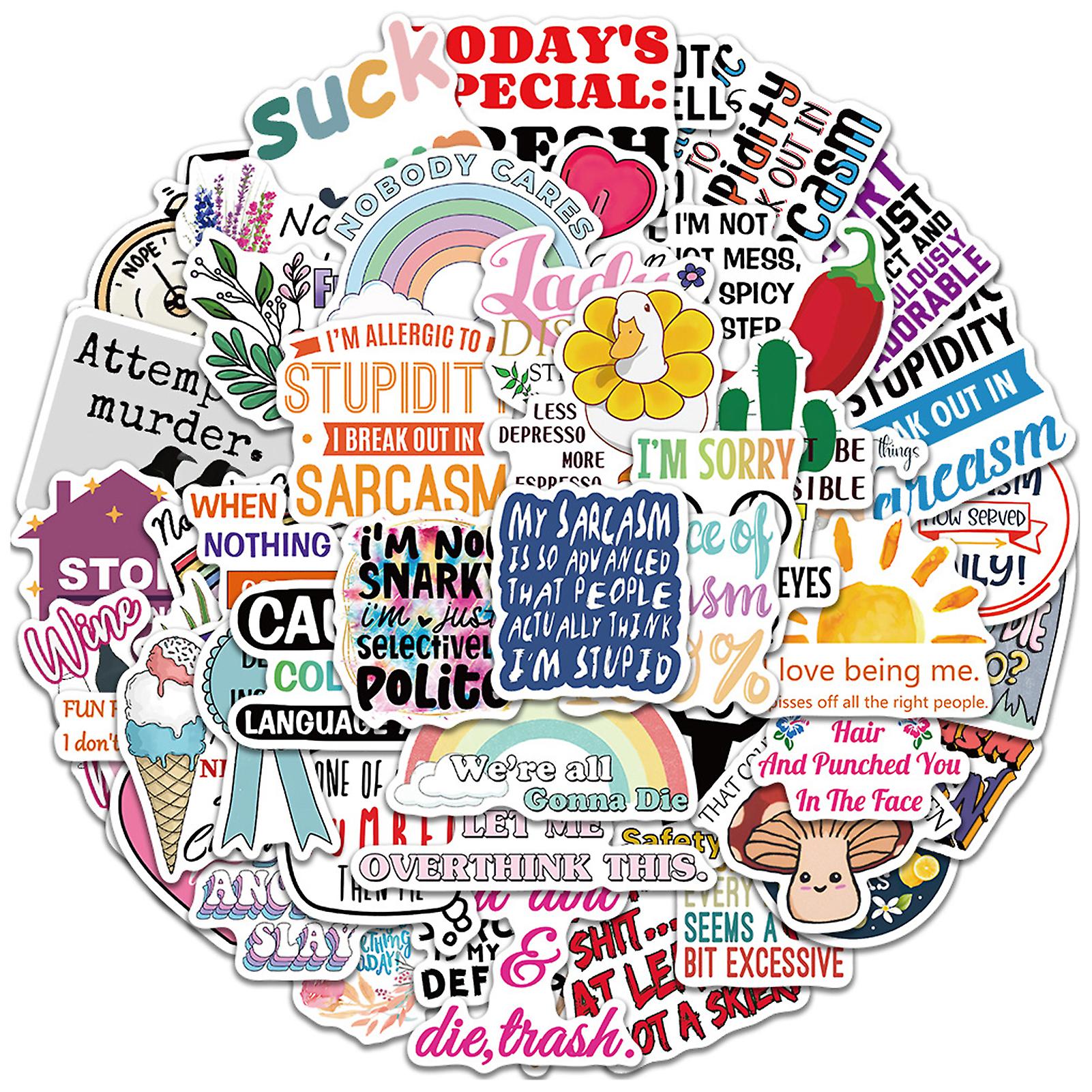 50Pcs Graffiti Sticker Durable Waterproof Decorative Quotes Words Stickers for Journal Laptops Phone Case